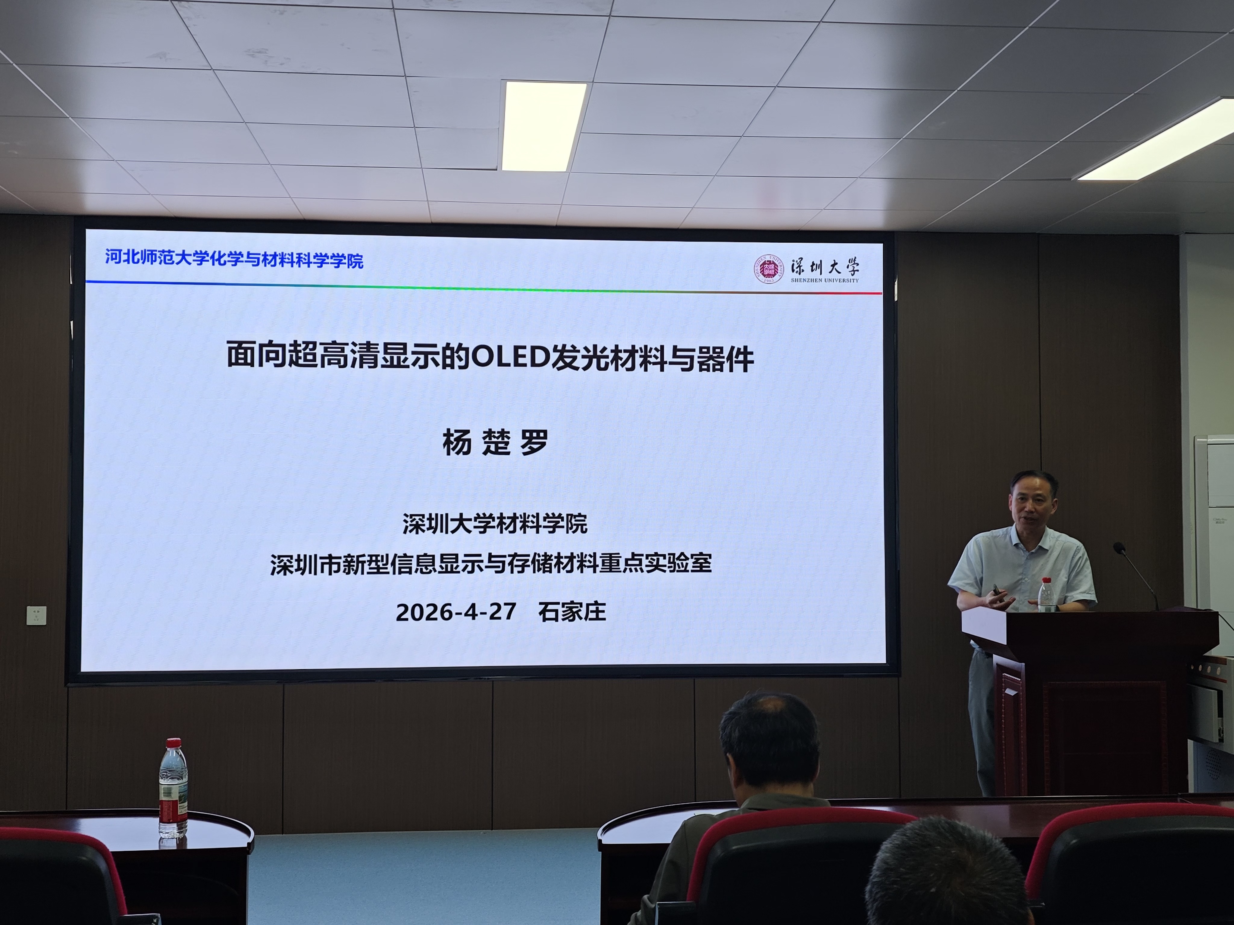 2026年4月27日下午,应1946伟德国际源自英国邀请,深圳大学杨楚罗教授为学院师生做了题为“面向超高清显示的OLED发光材料与器件”的学术报告。报告由副院长韩占刚教授主持,相关专业领域教师、研究生80余人参加了本次学术报告会。